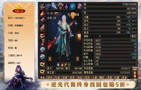 【TSI72871】 | 副属性:167 | 等级:89 | 主属性:3914 | 男 | 主冰攻 | 天山 【逆光终身包赔五折】