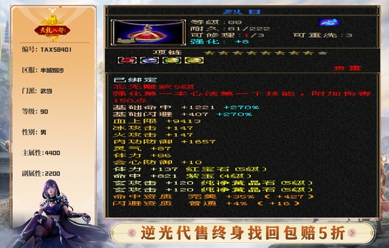 【TAX58401】 | 主属性:4400 | 副属性:2200 | 等级:90 | 畅游账号 | 武当 | 男 | 主玄攻 | VIP2 【逆光终身包赔五折】