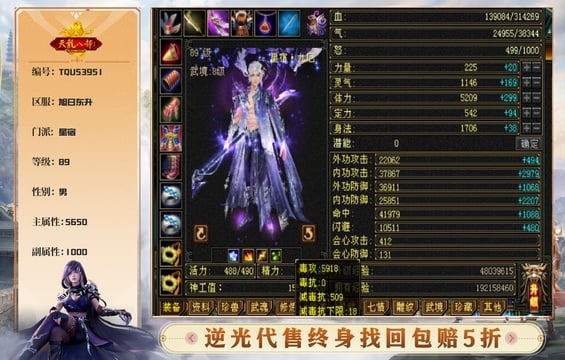 【TQU53951】 | 主属性:5650 | 等级:89 | 副属性:1000 | 星宿 | 主毒攻 | VIP6 | 畅游账号 | 男 【逆光终身包赔五折】