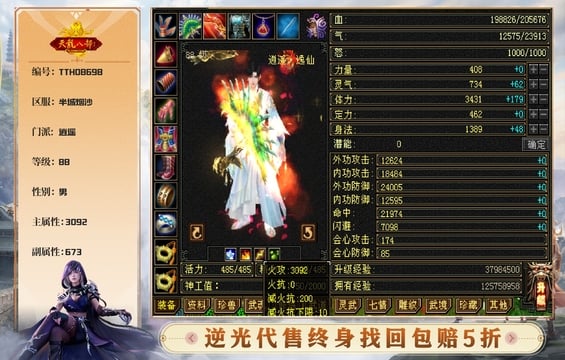 【TTH08698】 | 主属性:3092 | 副属性:673 | 等级:88 | 畅游账号 | 逍遥 | 男 | 主火攻 | VIP2 【逆光终身包赔五折】
