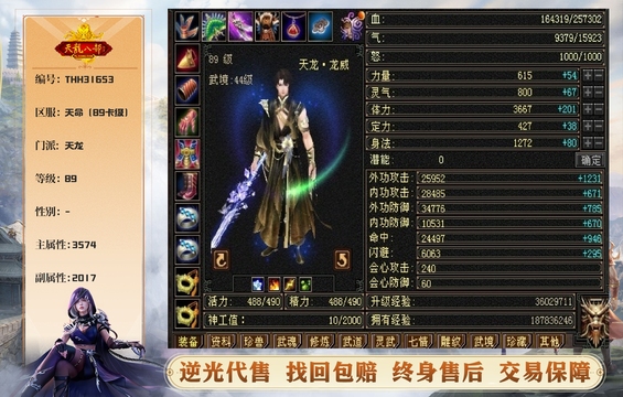 天龙 | 等级:89 | 主属性:3574 | 副属性:2017 | 主玄攻 | VIP3 | 畅游账号