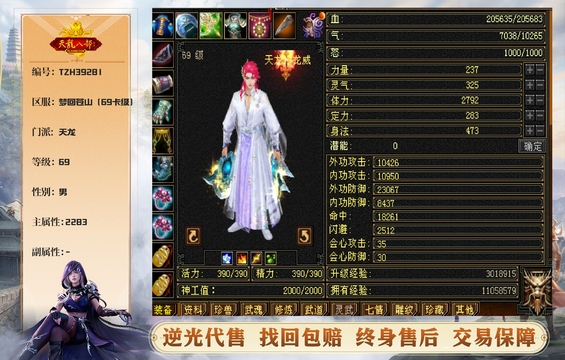 天龙 | 等级:69 | 主属性:2283 | 男 | 主玄攻 | VIP3 | 畅游账号