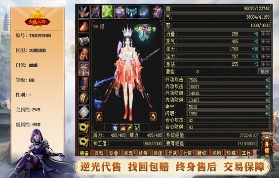 峨嵋 | 等级:88 | 主属性:245 | 副属性:450 | 主火攻 | VIP0 | 畅游账号