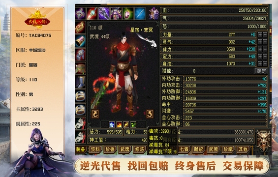 星宿 | 等级:110 | 主属性:3293 | 副属性:225 | 男 | 主毒攻 | VIP0 | 畅游账号