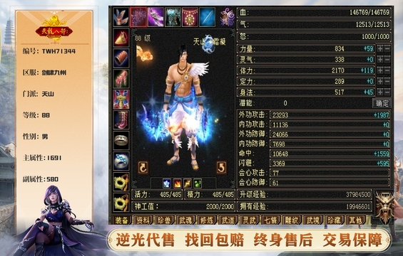天山 | 等级:88 | 主属性:1691 | 副属性:580 | 男 | 主冰攻 | VIP4 | 畅游账号