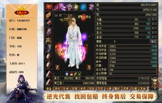 逍遥 | 等级:102 | 主属性:2211 | 副属性:409 | 男 | 主火攻 | VIP5 | 畅游账号